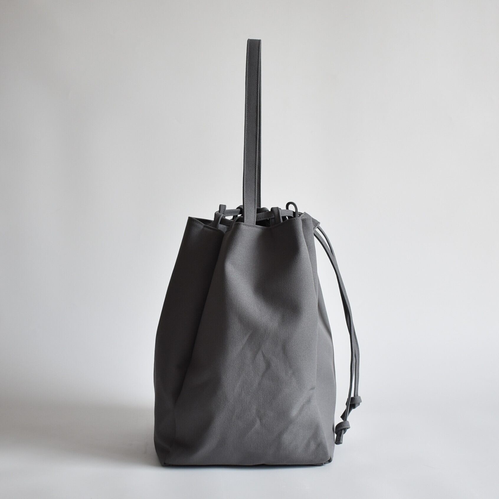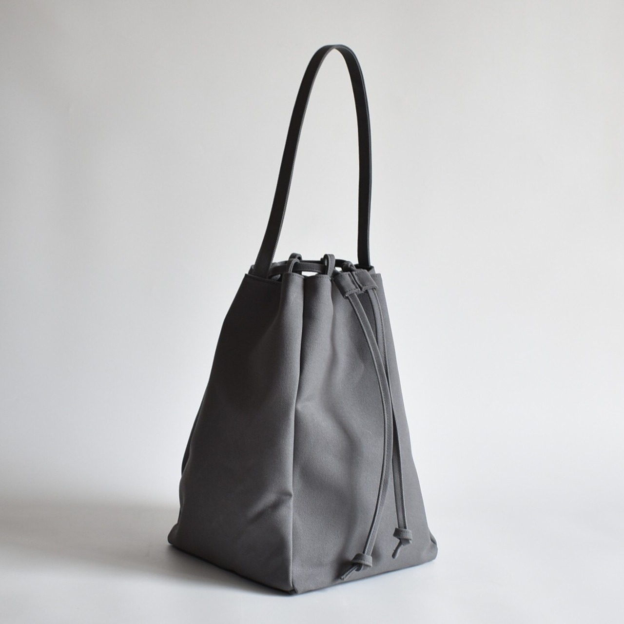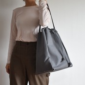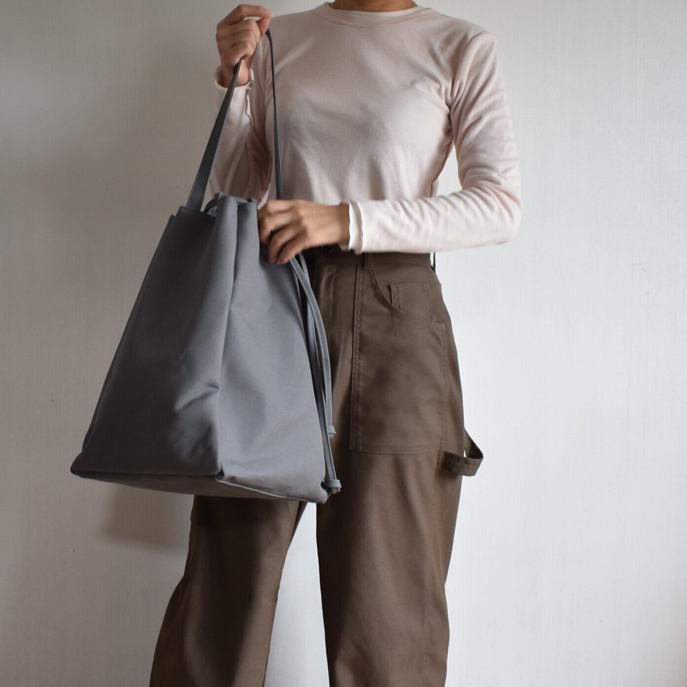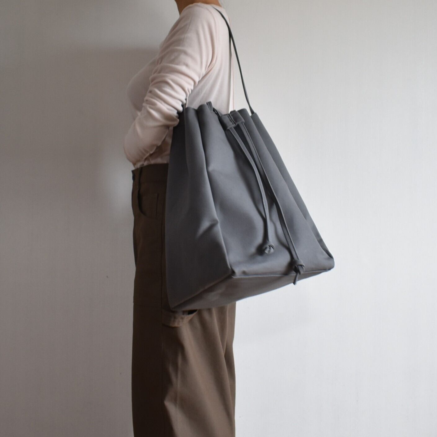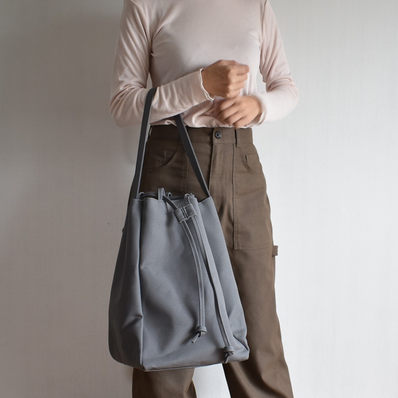 バッグの口元は、紐をスッと引くだけで瞬時にしっかりと閉まる巾着仕様。中身が見えたり飛び出したりする心配がなく、人混みや移動の際も安心です。機能的でありながら、巾着特有のふっくらとしたフォルムが、デザインのアクセントにもなっています。