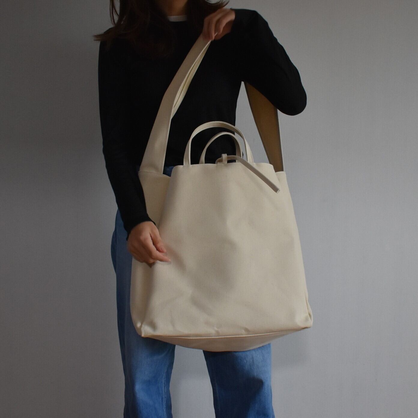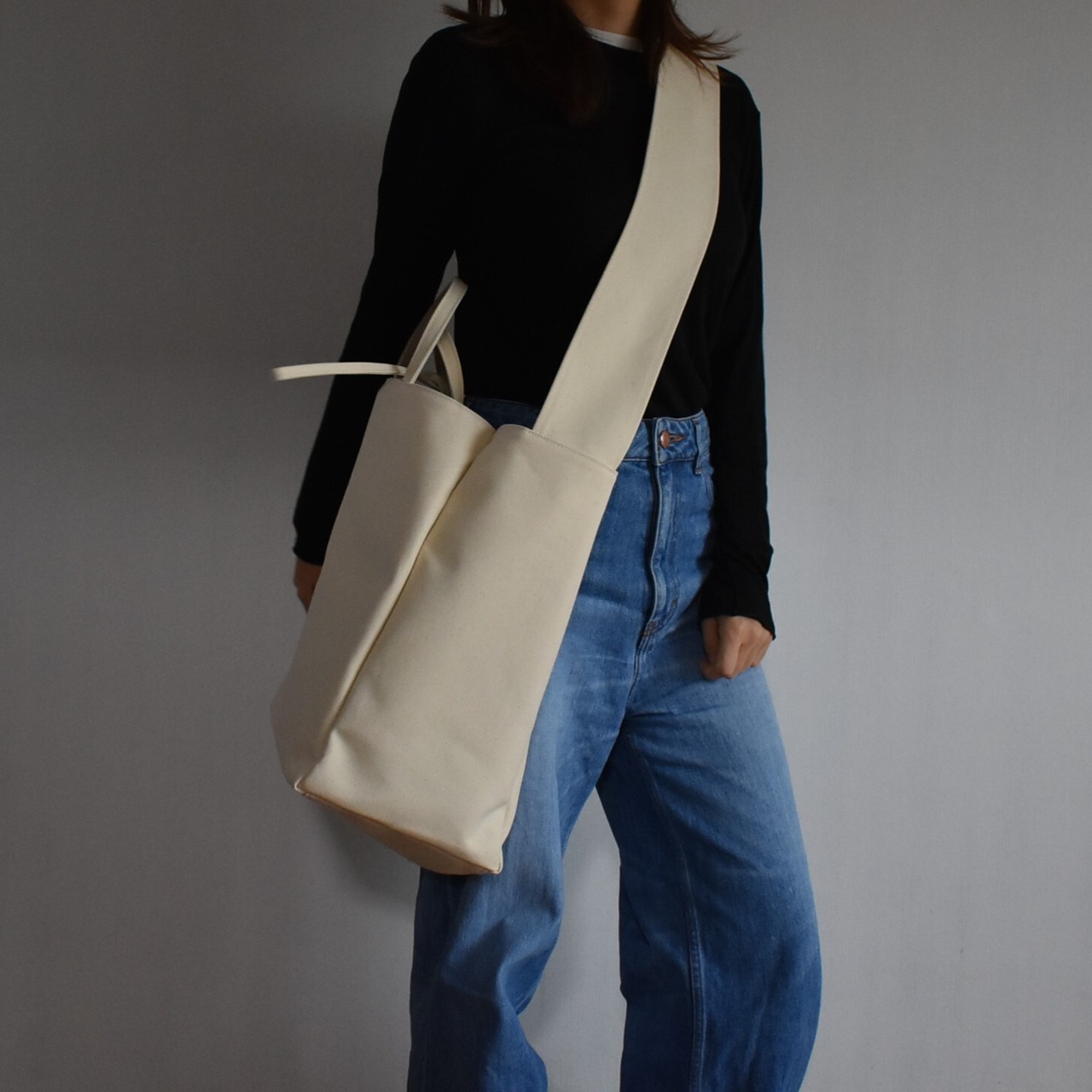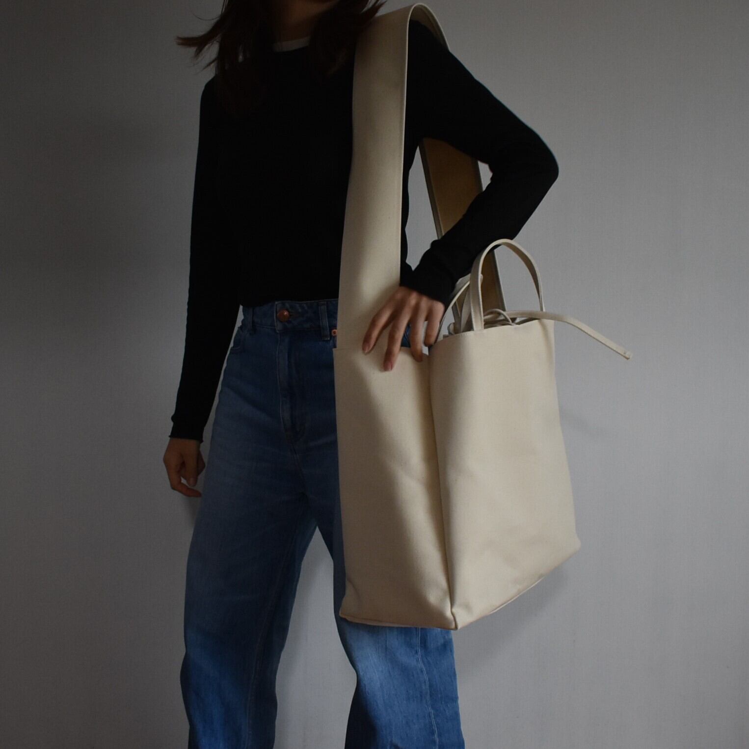 SQUARE TOTE BAGに太めのショルダーをプラスしたデザインのバッグです。