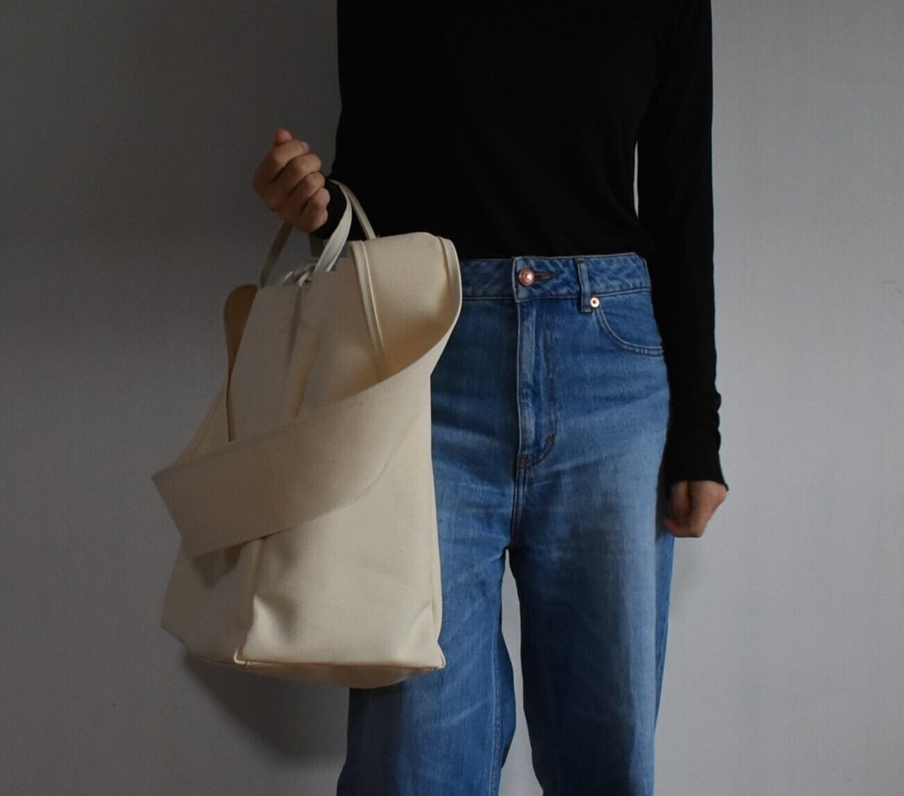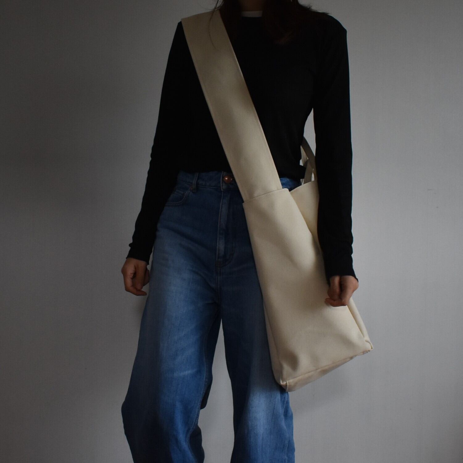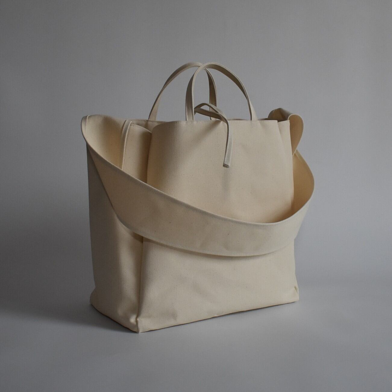 SQUARE TOTE BAGに太めのショルダーをプラスしたデザインのバッグです。