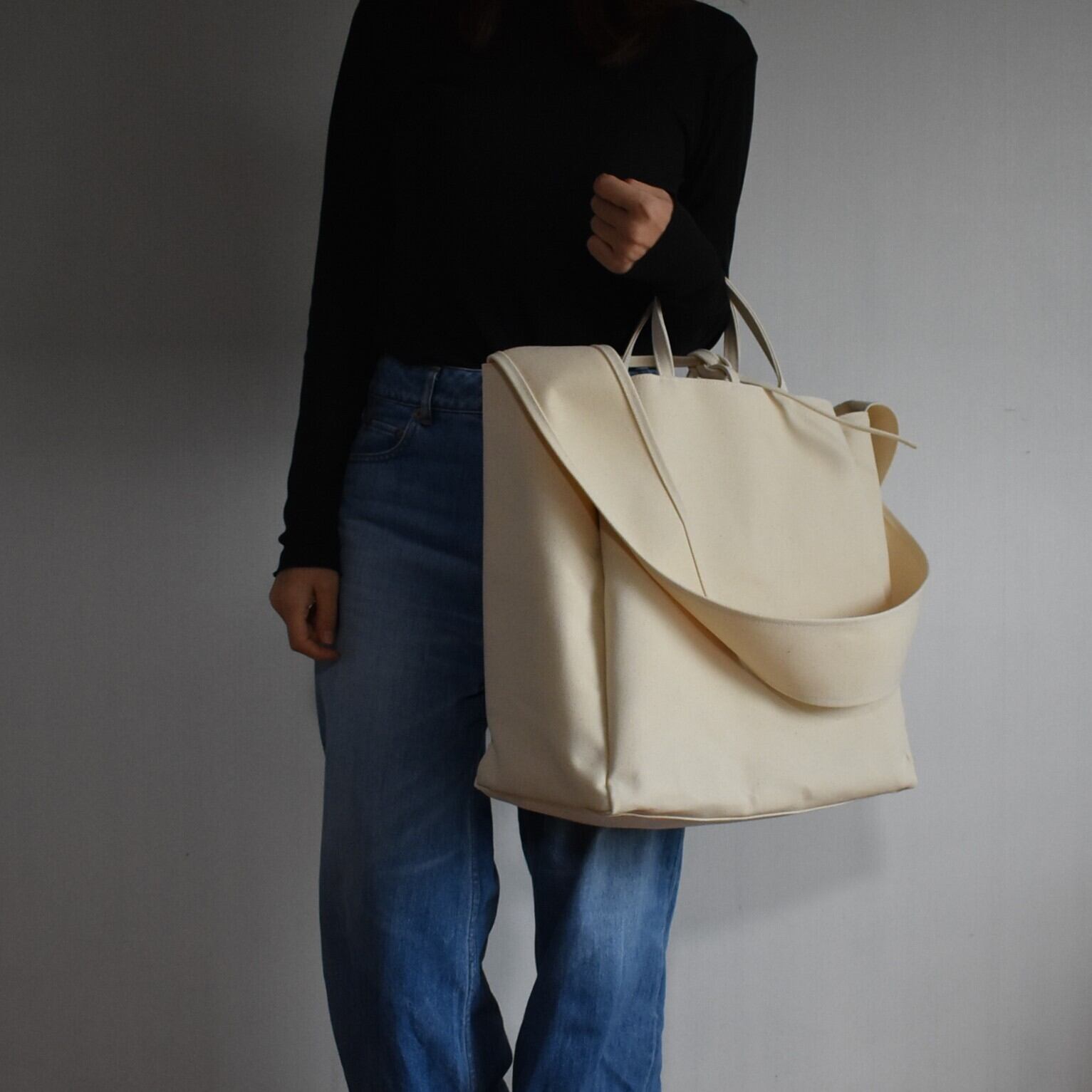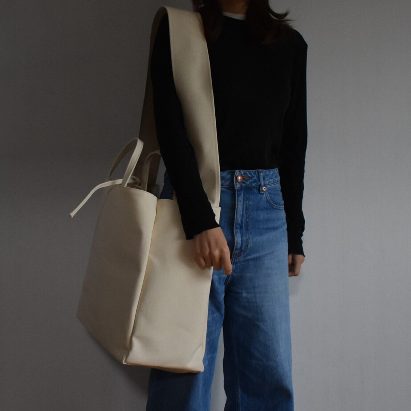【太めショルダーがポイントの、毎日使いたい大容量トートバッグ】