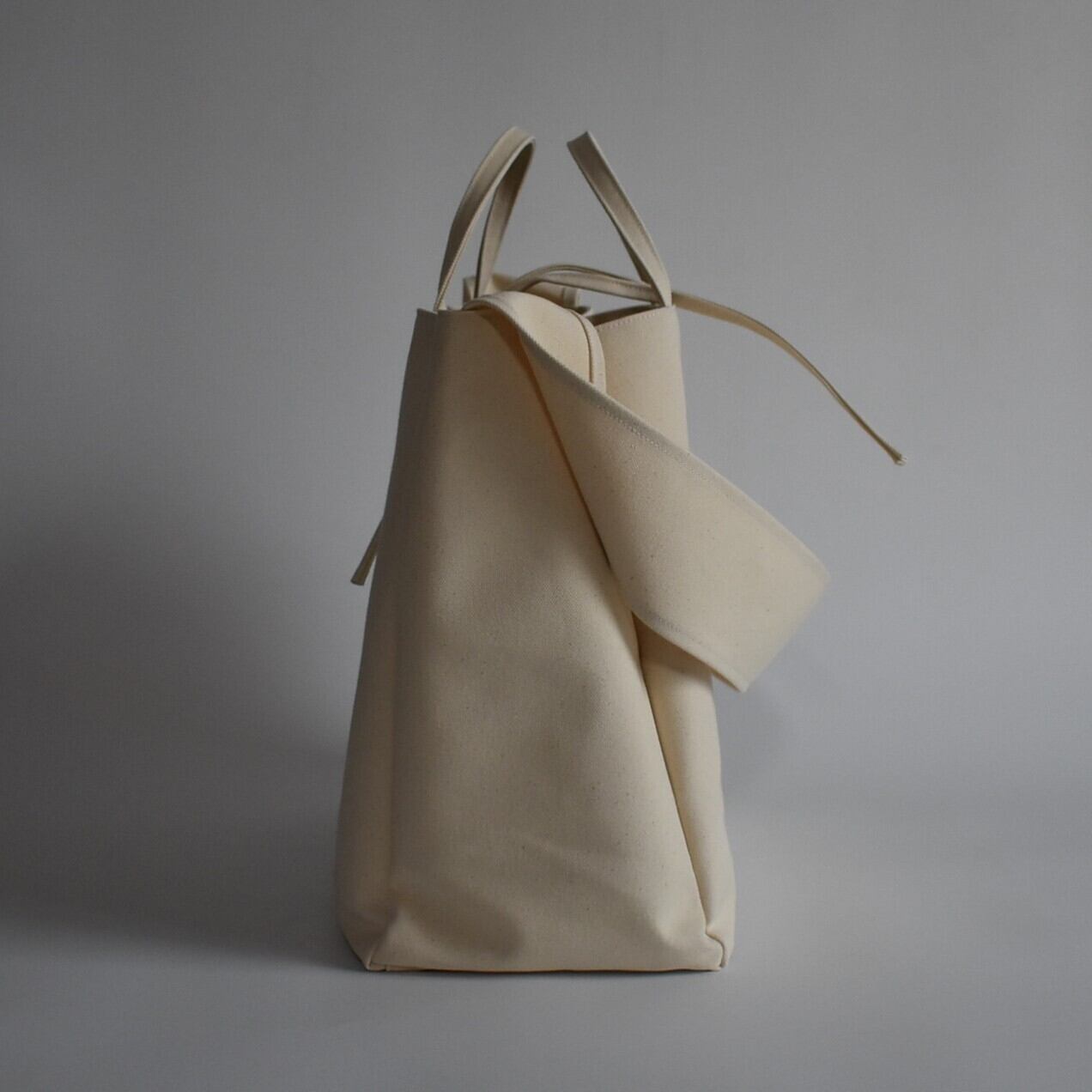 生地は、岡山県産の8号帆布を使用しています。程よいカジュアルさと品の良さがあり、国産帆布ならではの色の深みと風合いは、使えば使うほど増していきます。