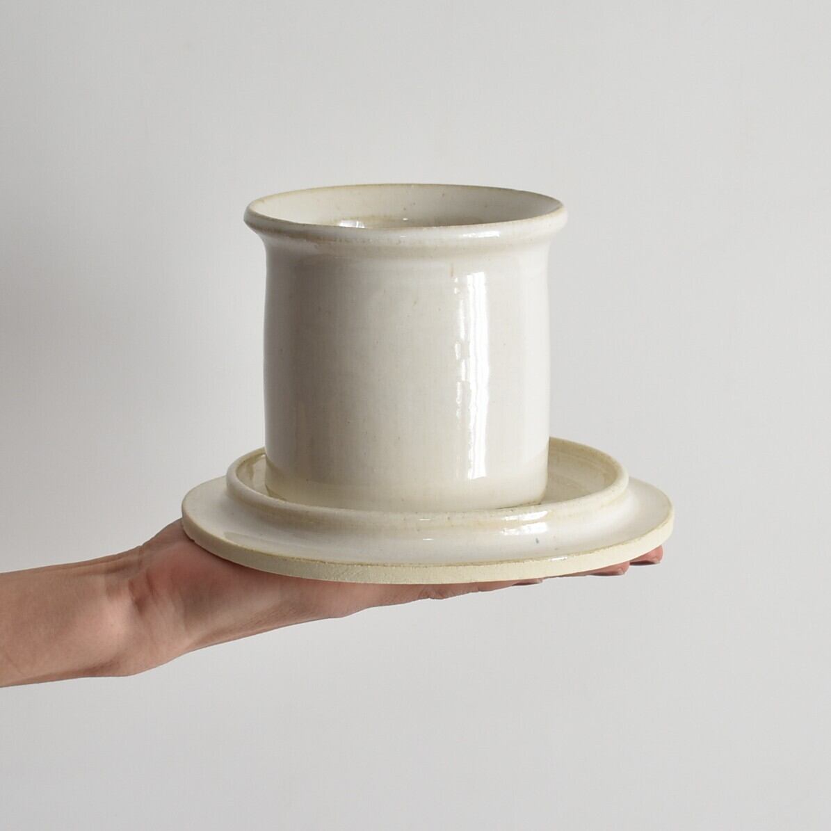 サイズ 鉢:口径約10.3㎝ 高さ約10㎝ 底幅約9㎝ 底穴約3㎝ 重さ約590g 受け皿:直径約16㎝ 内径約12.5㎝ 高さ2約㎝ 重さ約330g