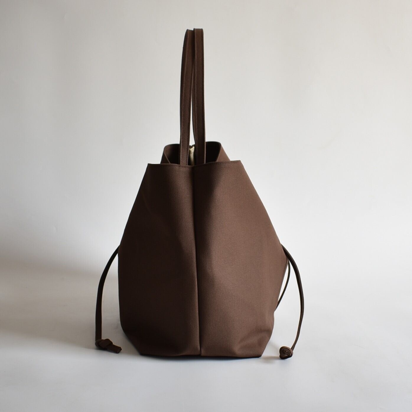底からクロスした紐を引くことで、その瞬間に生まれる柔らかなギャザーとシルエットの変化を楽しむ。