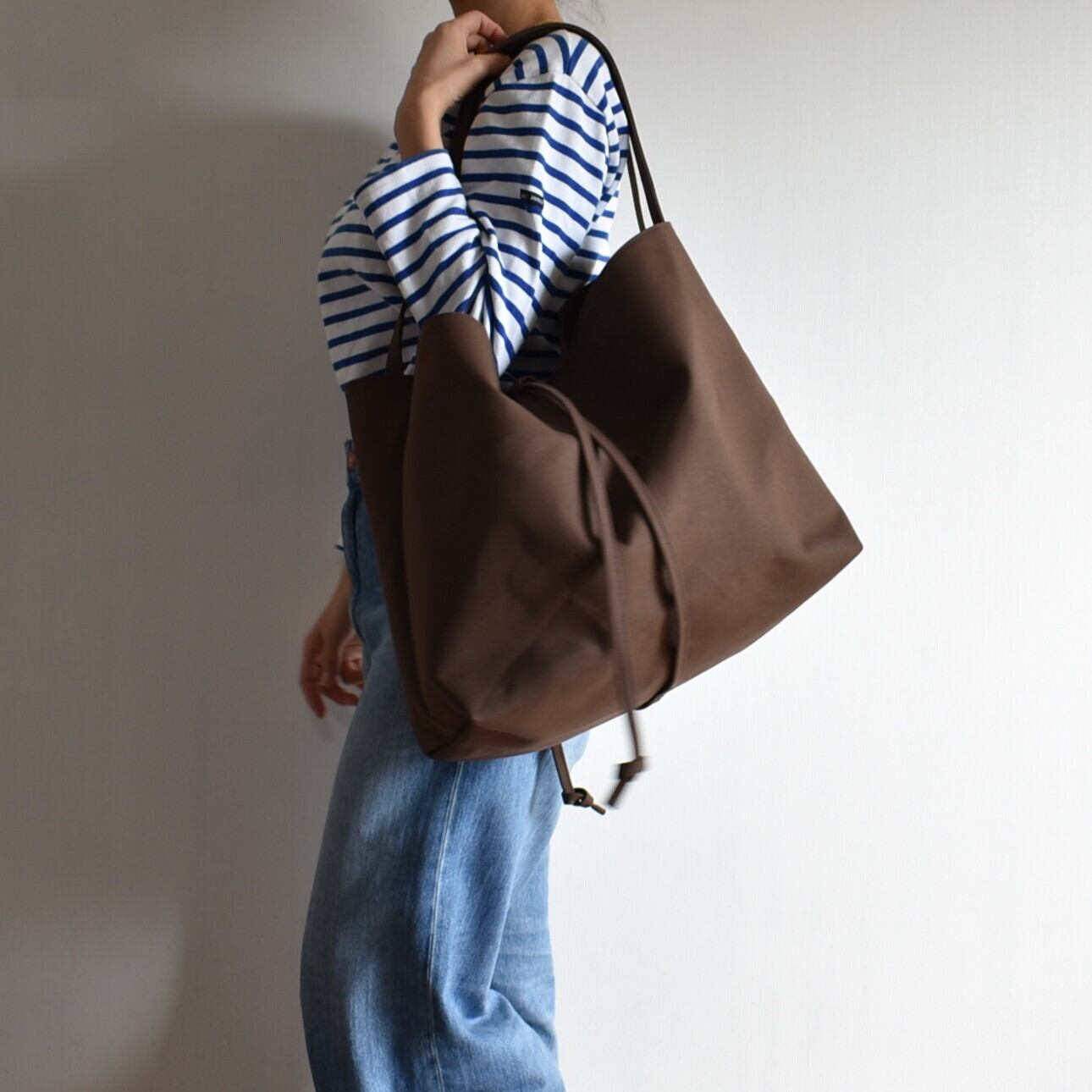 生地は、国産の8号帆布を使用しています。程よいカジュアルさと品の良さがあり、国産帆布ならではの色の深みと風合いは、使えば使うほど増していきます。