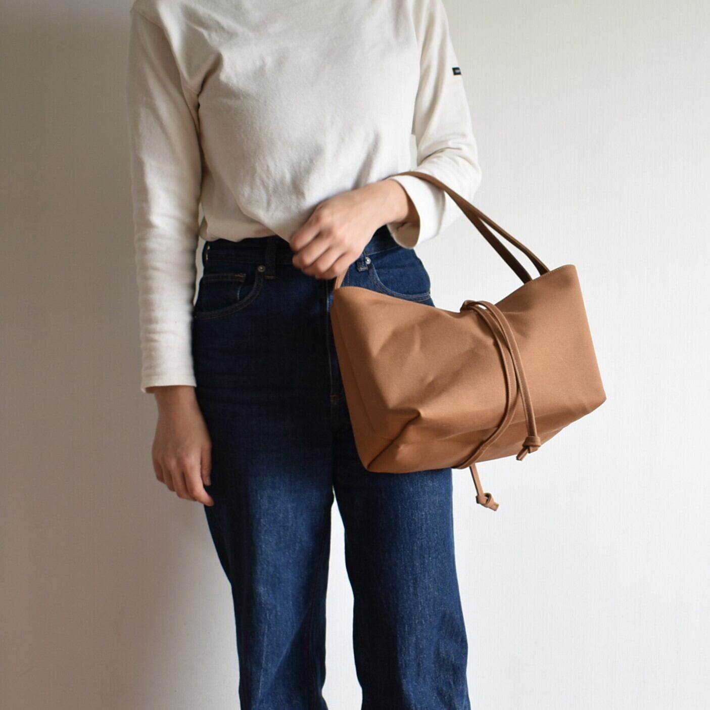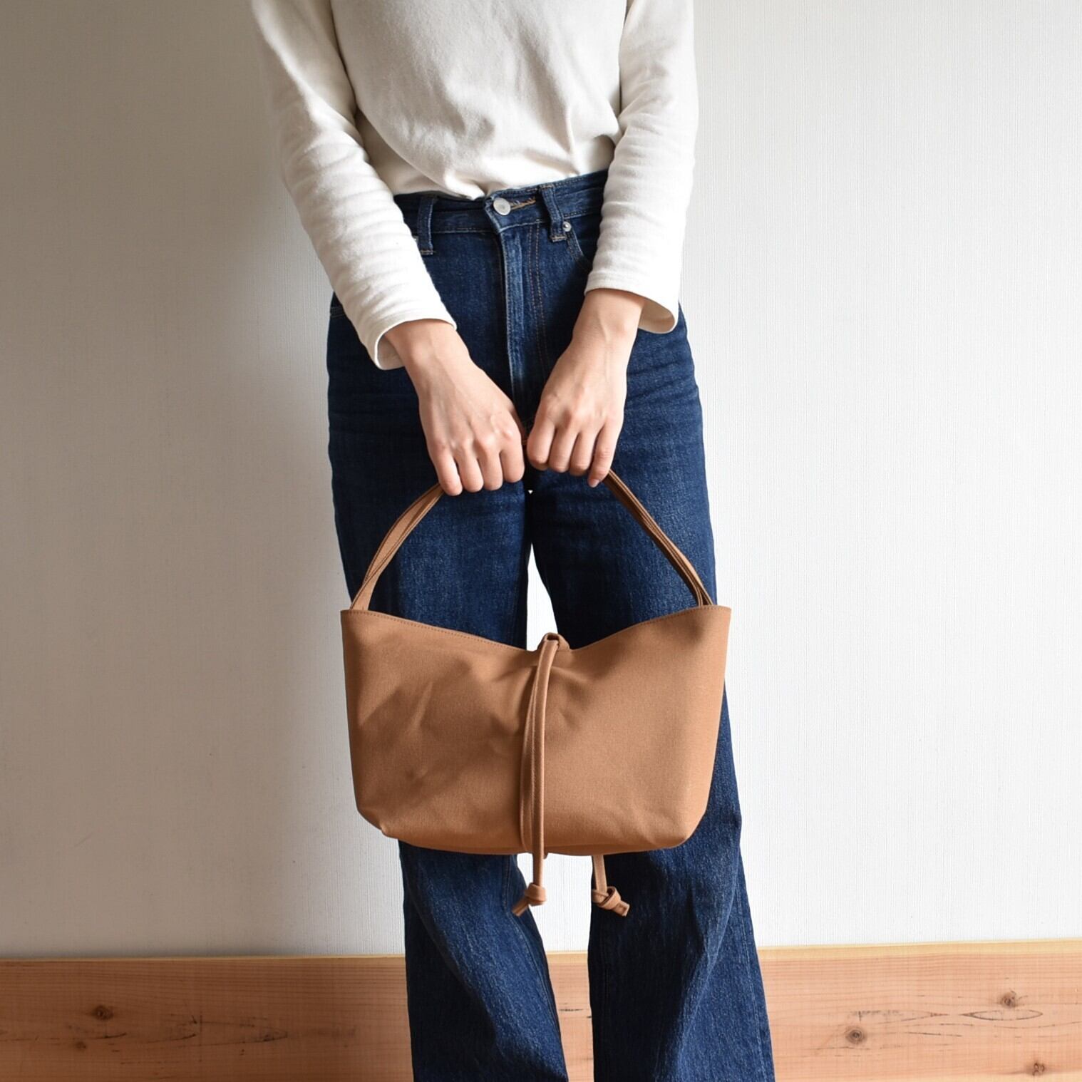 生地は、国産の8号帆布を使用しています。程よいカジュアルさと品の良さがあり、国産帆布ならではの色の深みと風合いは、使えば使うほど増していきます。