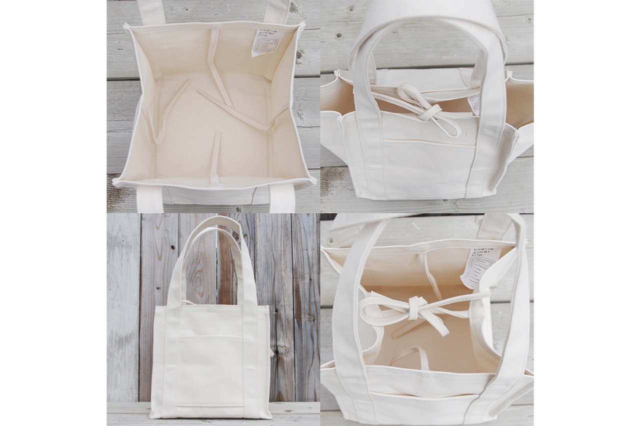 また、出歩いた時に中身が見えないよう、帆布の肉厚な生地で作った中紐が左右・前後に付いているので