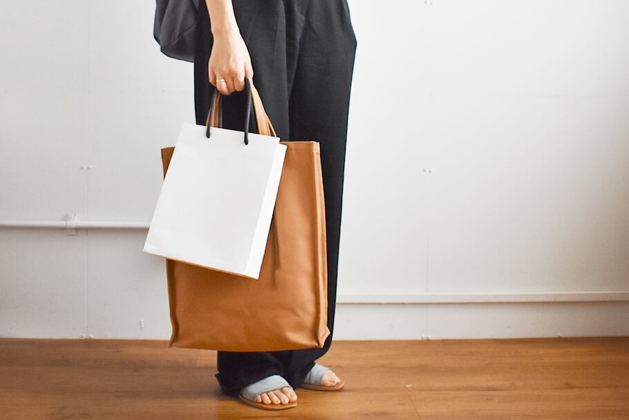 ミニバッグやバックパック、紙袋などと二個持ちも様になるシャープさ。