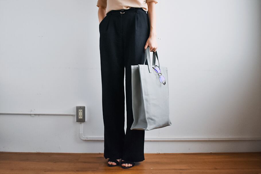 ミニバッグやバックパック、紙袋などと二個持ちも様になるシャープさ。