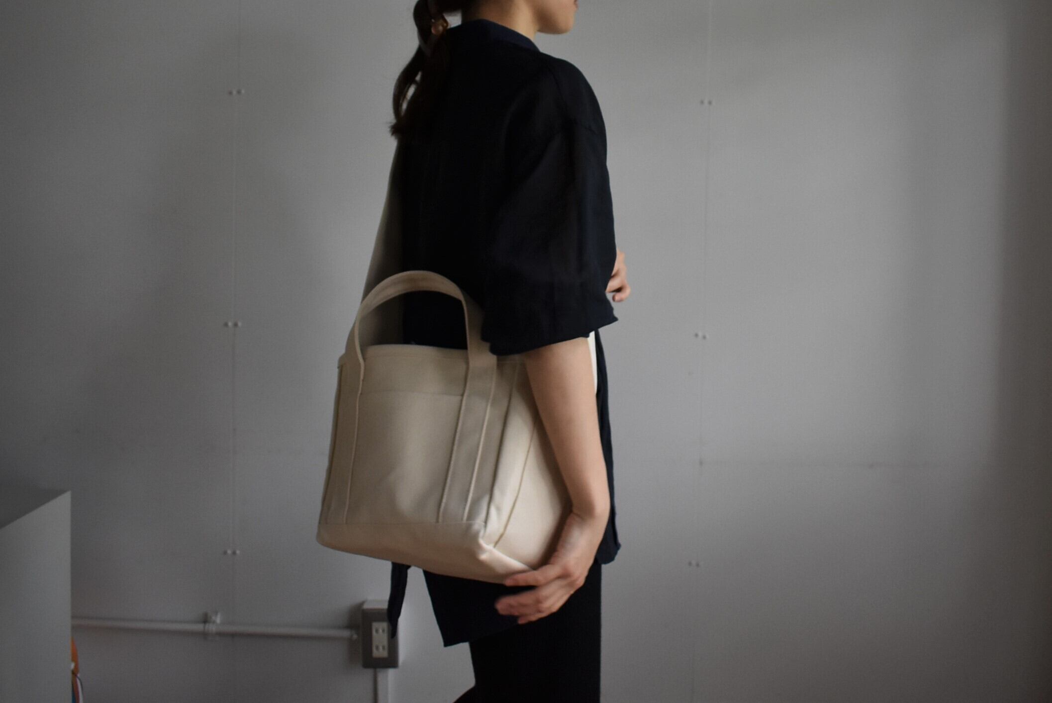 生地は、岡山県産の8号帆布を使用しています。程よいカジュアルさと品の良さがあり、国産帆布ならではの色の深みと風合いは、使えば使うほど増していきます。