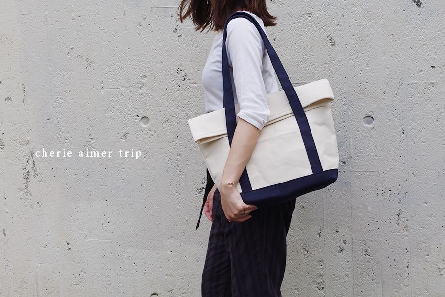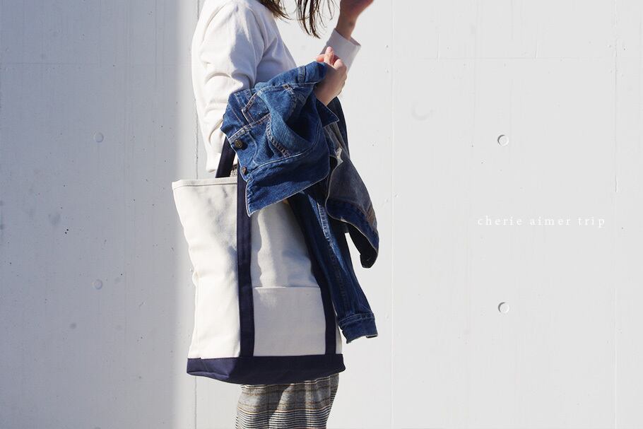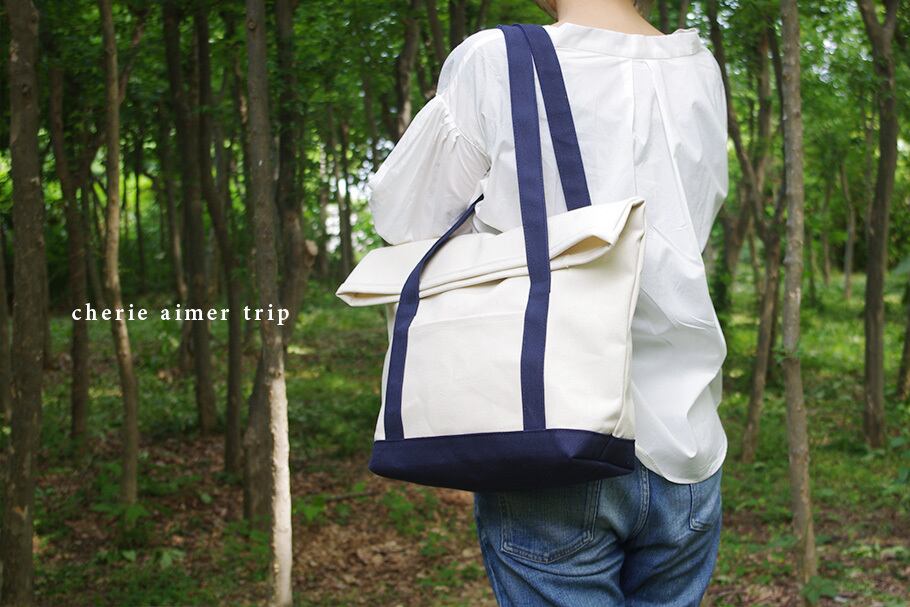 BEND TOTE BAG(キナリ×ネイビー)