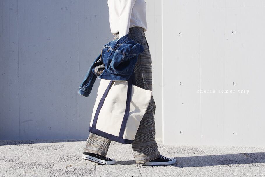 バッグの口元をBEND(折り曲げて)して使用するタイプのトートバッグ。
