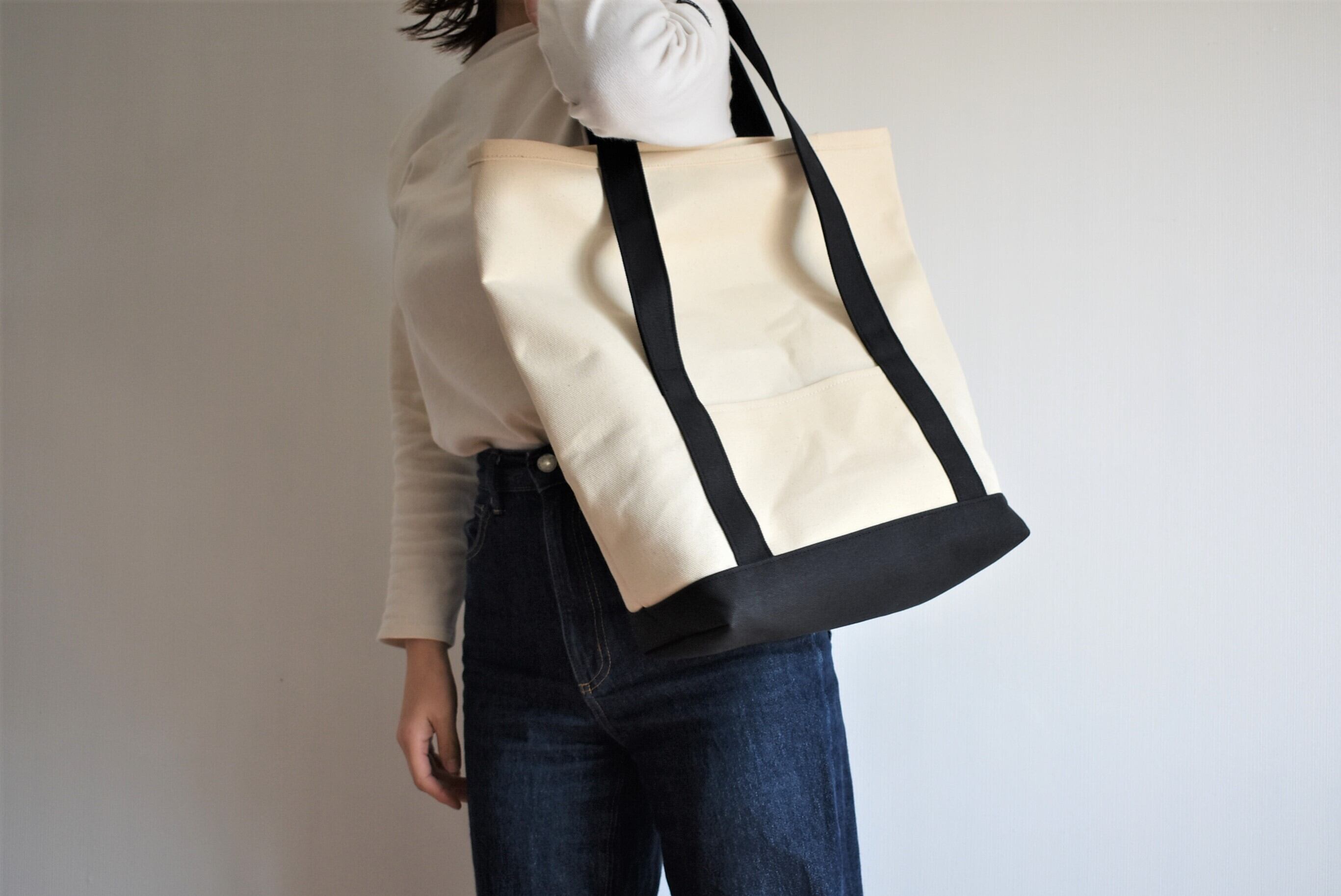 【折り返してシルエットが変化する2way帆布(キャンバス)トートバッグ】