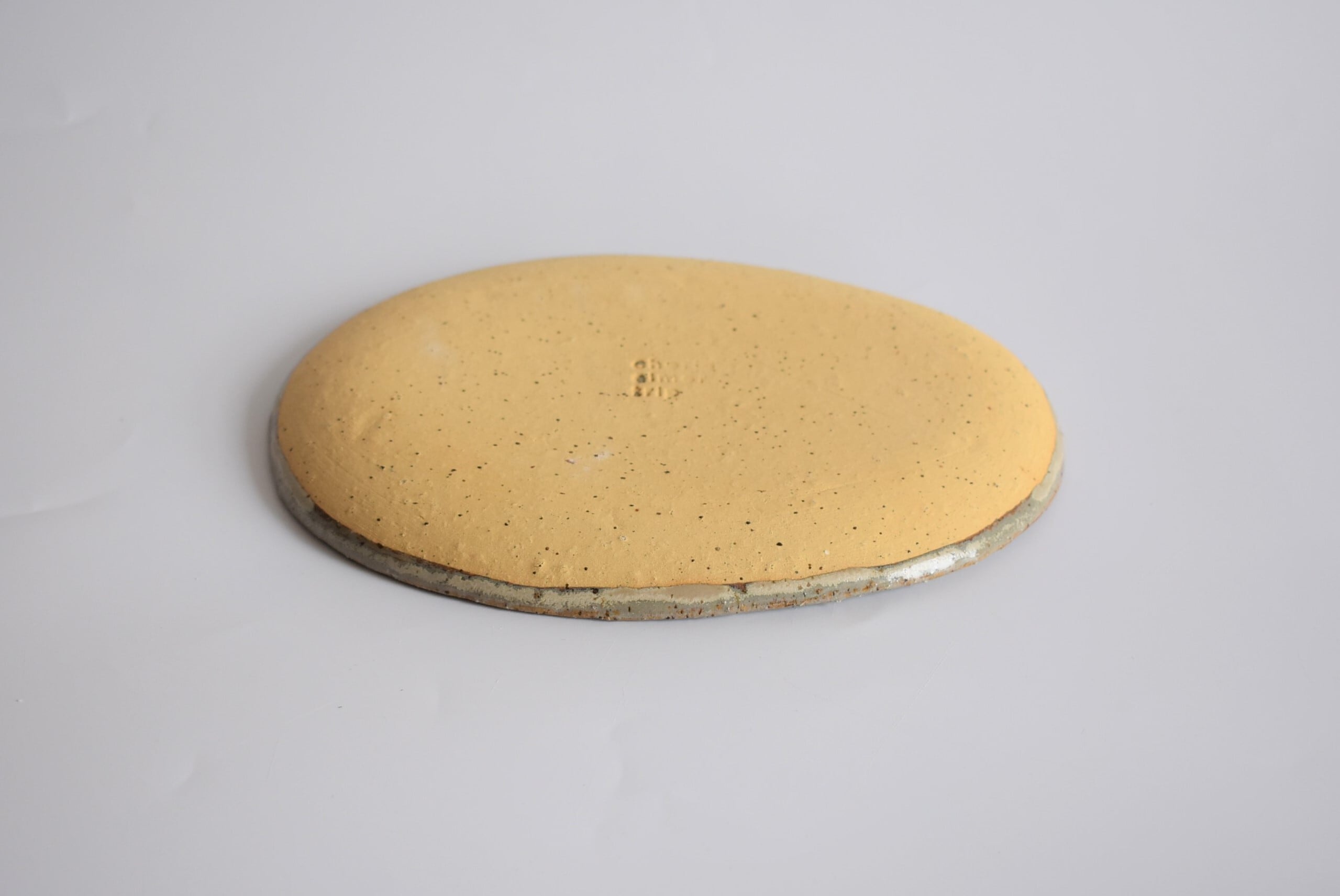 楕円形・オーバル・重め平皿 黄御影土×白鼠結晶釉