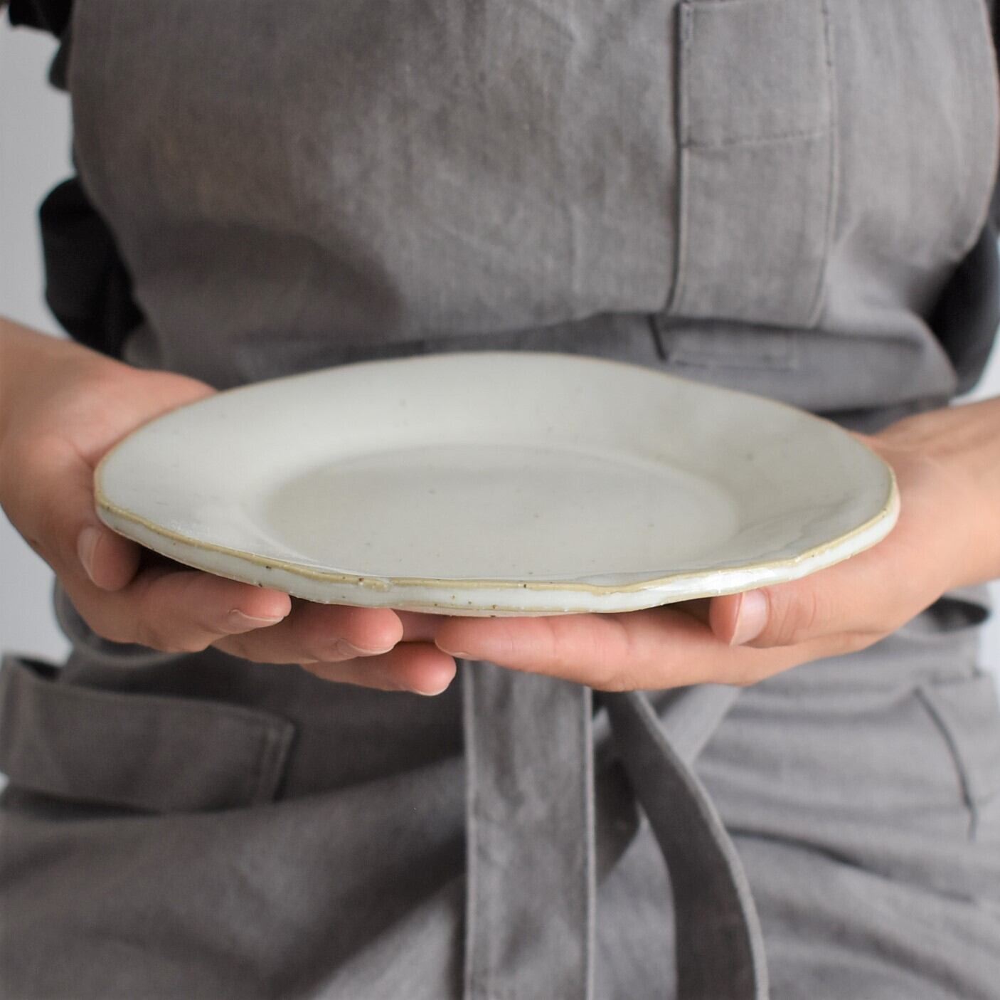 きれいな丸ではなく手作り感のある歪んだ形が特徴的な丸平皿です。