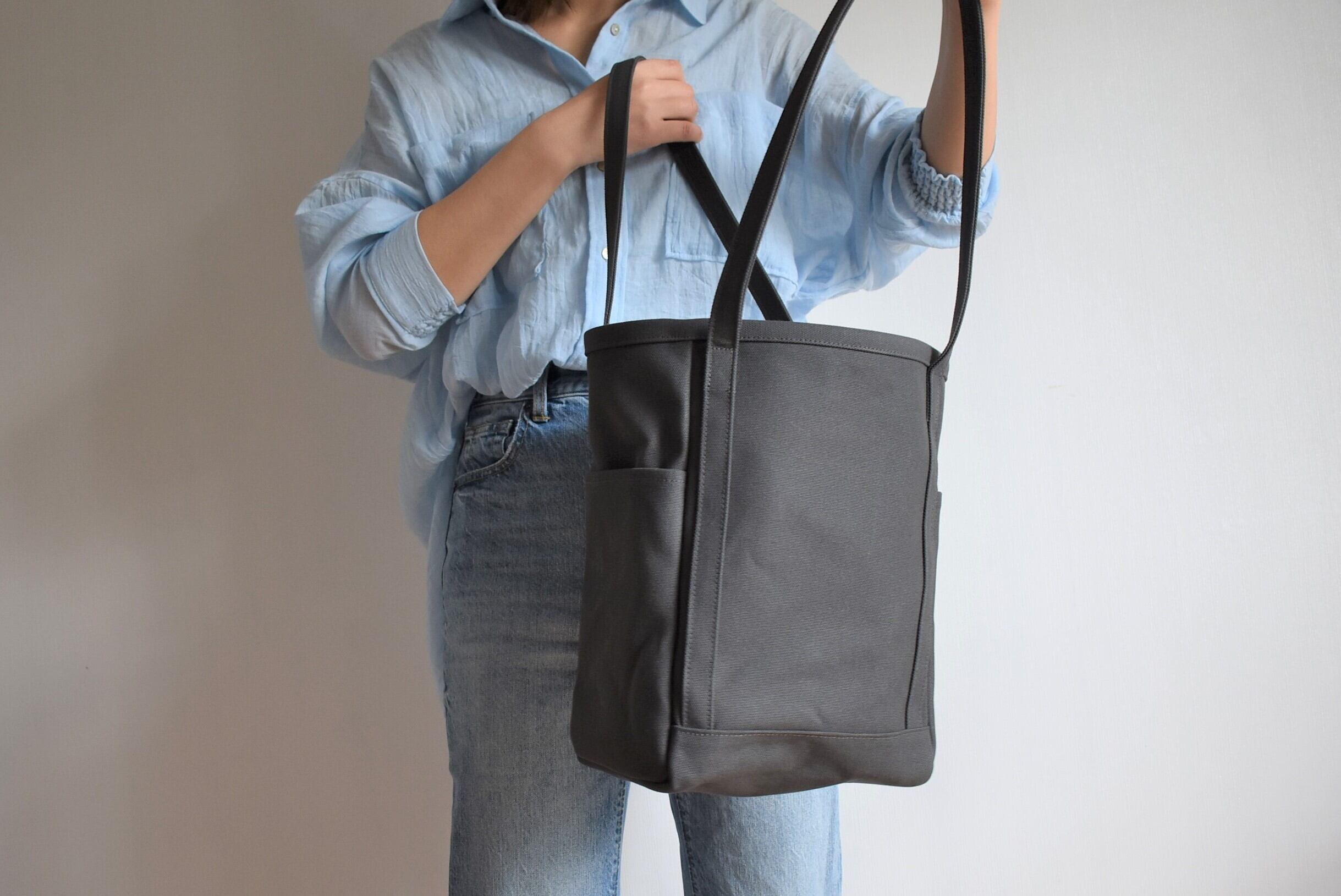 【すっきりとした縦長シルエット帆布トートバッグ】