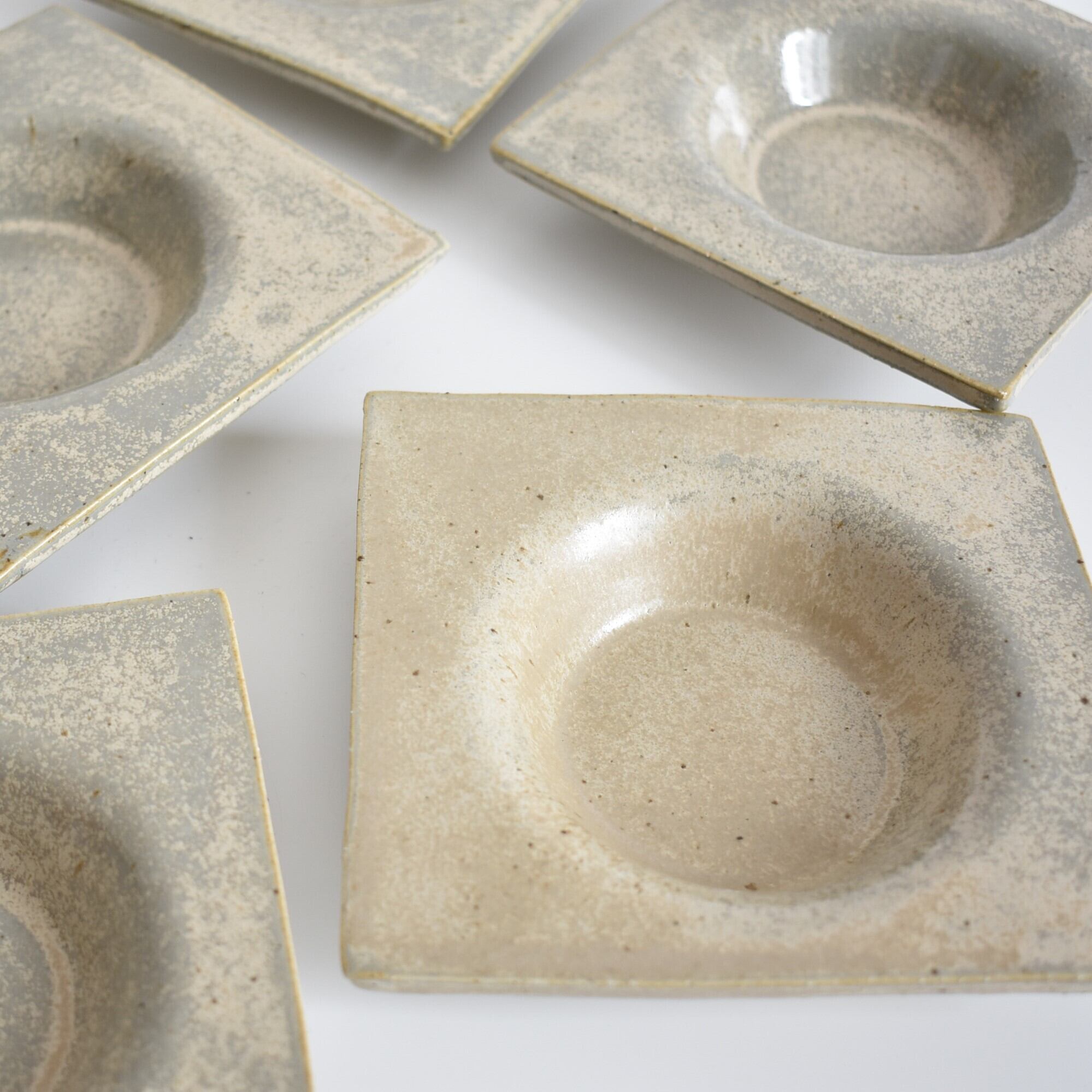表面がぶつぶつとした質感の手触りです。器の底は研磨してありますが引きずると家具等に傷がつく可能性がありますので取り扱いの際は十分ご注意ください。